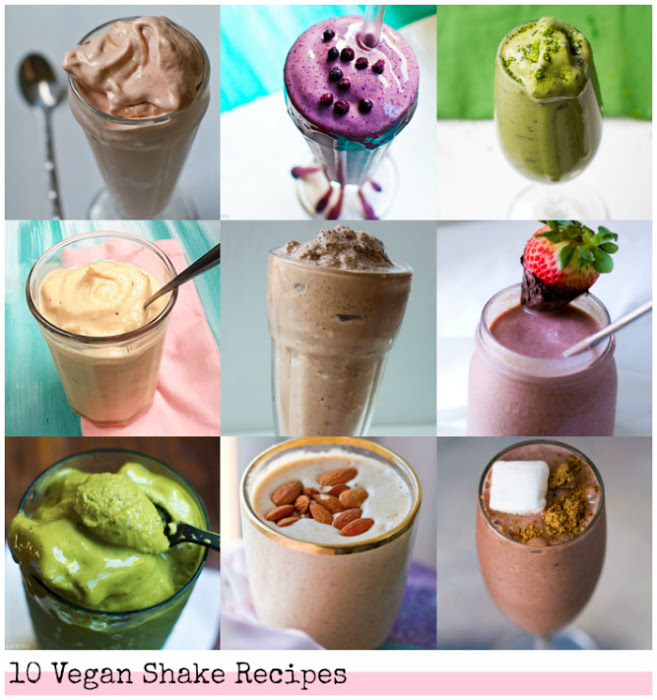 Do you feel it? That warm feeling on the back of your neck. The squint in your eye and the urge to take off your fuzzy sweater and heavy winter shoes - and frolic around in a tank top and light sandals. It's the feeling of spring! And no matter where you live (sunny LA or breezy Boston) spring fever will catch your glance at some point soon and when it does you'll be wishing you had a tall frosty glass of something to match your sweet-n-sunny mood. I usually reach for a smoothie - or a vegan shake. So here are ten of my favorite vegan dessert shake recipes -..