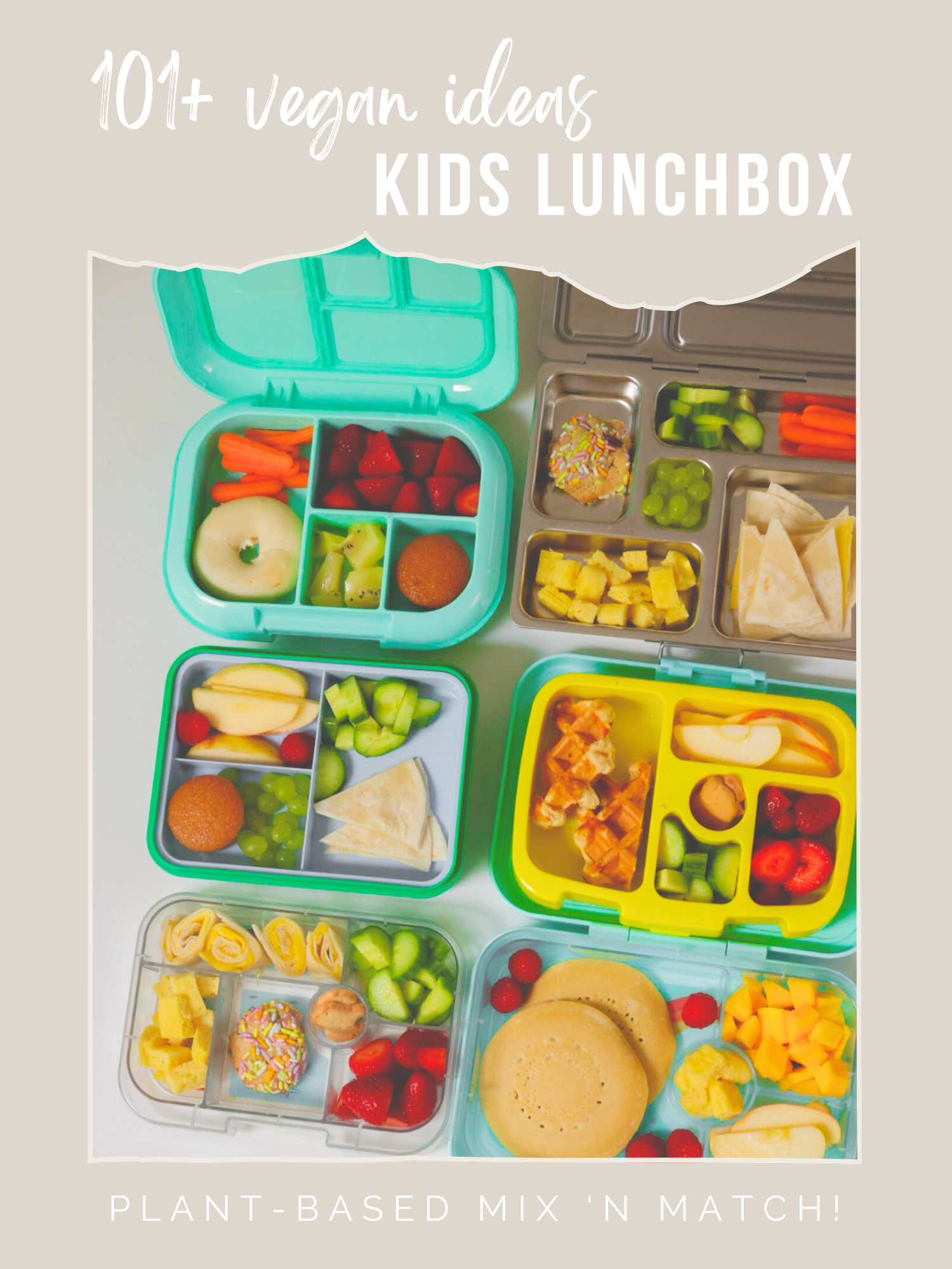 First day of school vibes, and I am coming in hot with a resource for you: 101 Kid-Friendly Plant-Based Lunchbox Ideas. This is my ultimate list of 101+ plant-based lunchbox ideas for school kids — colorful, nutritious, and easy to mix and match.