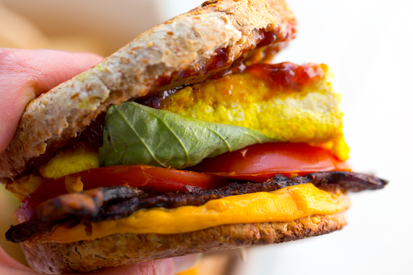 * vegan breakfast sandwich with eggy tofu