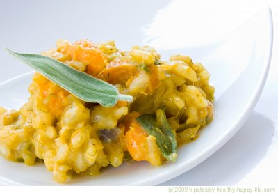 I refer to this recipe as my Triple "S" Risotto: Sweet Potato, Scallion and Sage. It is a bit creamier and bolder than a traditional risotto. The scallions, sweet potatoes, garlic salt and hint of cayenne really pump up the flavor. This is comfort risotto all the way. Plus it's healthy due to the generous amounts of copper, manganese, B vitamins, vitamin K, and Vitamin A in the ingredients.