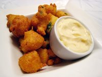 Jalapeno Hush Puppies: Light fluffy cake-like fried nuggets. Not as spicy as I would have liked, but and excellent 'snack' to go with my rose champagne. (Made vegan)