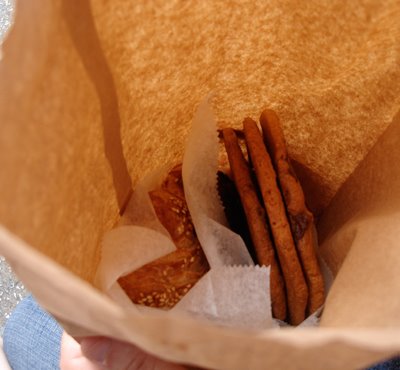 Label Check: We're talking cookies and muffins here, so the nutrition level won't win any awards. But, like all vegan baked goods, lower in saturated fat and other animal product 'bad' stuff. Plus vegan means these are cruelty-free cookies. The sesame seed muffin-bread thingy (honestly, I forget the name) tasted pretty healthy. Lots of good-for-you sesame seeds and bananas I recall.