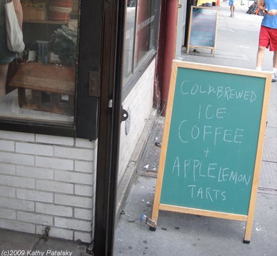 Shelf Appeal: Awesome little 'green store' everything is made from recycled, and truly re-used materials. The floor is cork and the table is bamboo with recycled fiber as the base. Learn more here: Birdbath Construction. The bakery goods are not enclosed in a case though-not so appealing. They give discounts to customers who arrive on bikes or skateboards. Cool.