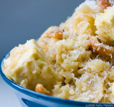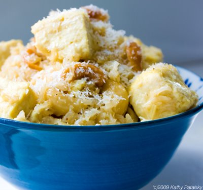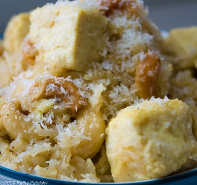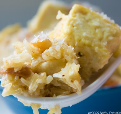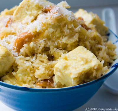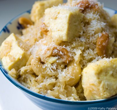 Coconut Cashew. This dish is simple, because I use rich flavors. Crunchy-creamy cashews, coconut milk, shredded coconut, organic brown rice and vanilla rice milk are just a few of the flavors you'll find in this dish. Add in some tofu pillows (flavored by absorbing the flavors of the rice) and you have a dish that is not only fluffy and comfy, but healthy! It's loaded with protein, fiber and vitamins. You can always make this dish lower in fat by substituting coconut milk for rice milk. But trust me, that creamy coconut milk adds a warm comfy flavor that I wouldn't dream of skipping. Even a few Tablespoons of coconut milk will bring the rice to life.