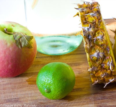 Fresh Pineapple and a few Pink Ladies. What to do with that other half of fresh pineapple that you couldn't finish yesterday morning? Make white sangria!