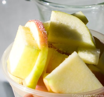3. Add the apples to the pitcher.