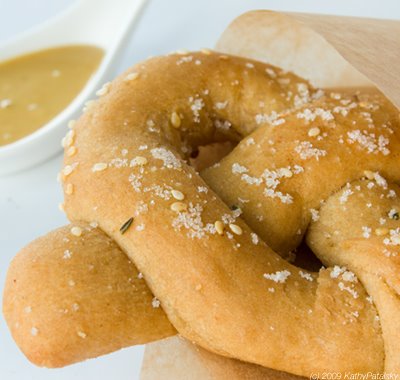 Better Ingredients. Better Pretzels. I use 100% Whole Wheat flour in my yeasted pretzels. I also use exotic sea salt from the dead sea. Rich in minerals. But any natural sea salt works fine. (Those bleached-looking white cubes I see on the street carts scare me). I use extra virgin olive oil and a very small amount of agave syrup to sweeten these golden twisted gems. And the mustard? Top notch spicy deli mustard. All natural. None of this glows-in-the-dark yellow mustard. I wish there was a sidewalk cart that sold these delicious snack treats! I'd buy them!
