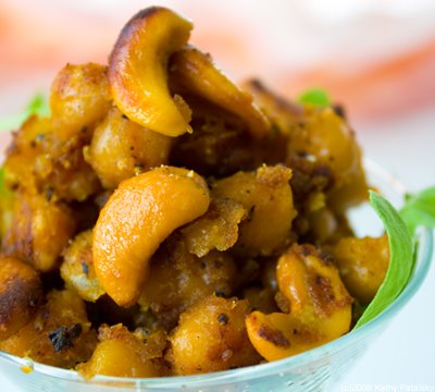 9) Reduce heat to med-high and allow to cook through. A little more browning is a good thing. When the beans look just about done-and have absorbed all the liquid, add in the cashews. Toss cashews with beans-they should soak up any remnant spices and moisture.