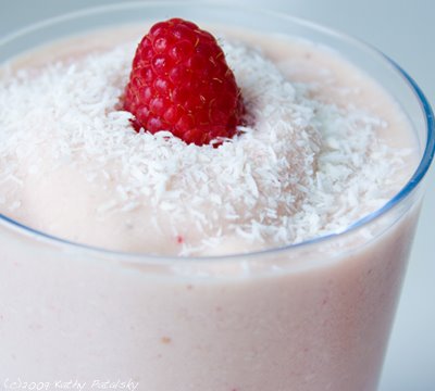 This silky strawberry-chai flavored smoothie will remind you of a strawberry-short cake. It's light and fluffy and big on sweet strawberry flavor. And trust me, a sprinkling of flaked coconut on top is better than a big pile of whipped cream. I use Bolthouse Farms Vanilla Chai Protein Beverage. I'm addicted to that drink. And this dessert-any-time-of-the-day smoothie. Divine!