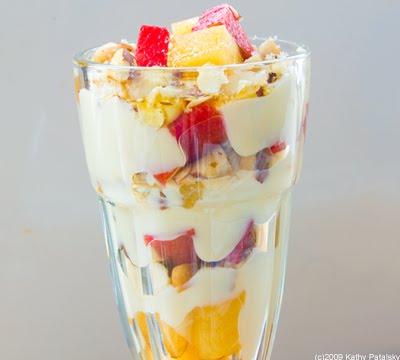 Healthy Parfait. What do you get (nutritionally speaking) when you munch this parfait? Antioxidants and fiber from the fruit. Protein and probiotics from the yogurt. Fiber and healthy fats from the nuts. Nutrition approved!
