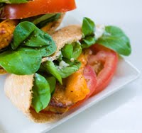 Here is a yummy recipe for a post workout meal. It's high in protein from the tempeh and high in fiber from the whole wheat pita and veggies. Plus the mache lettuce and tomato slices are high in veggie nutrients like antioxidants. It's even light enough to eat a few hours before a big game too. Oh and that vegan cheddar cheese makes the carb/protein/fat trio in sync.