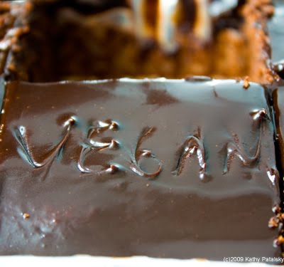 Label Check: 100% vegan. The brownies I tried today were made with whole grain barley flour and spelt flour. (Gone Pie rarely uses wheat flour, and never uses shortening). Very nice. I liked how I could add extra chocolate fudge frosting if wanted a more decadent bite.