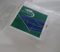 Too many to count: Giant US Open logo-ed plastic bags. Why not give discounts to those who bring their own canvas bags?