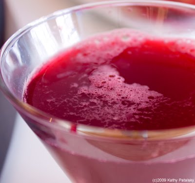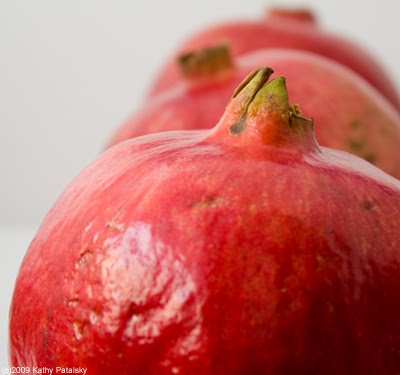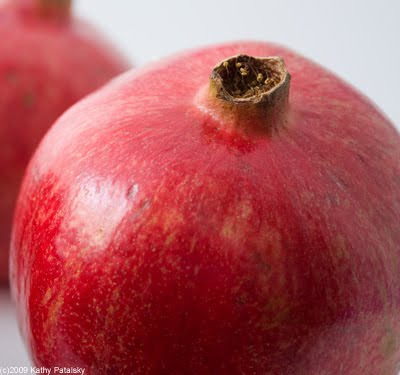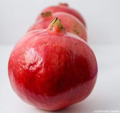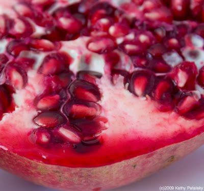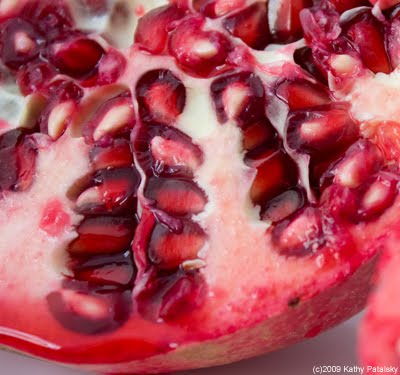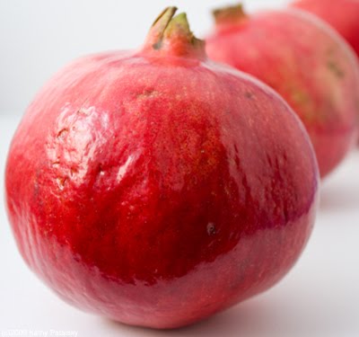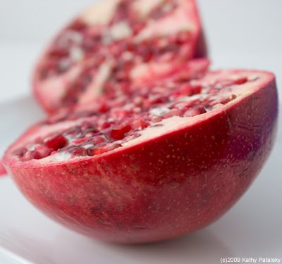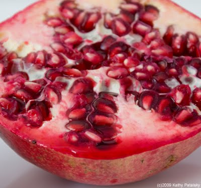 There it sat in my lonely fruit bowl. A beautiful bright crimson-pink pomegranate. It had been sitting there for a week, watching the other fruit, bananas, kiwis, apples, mandarins and papayas come and go. "But plucking pomegranates is such a pain!" I protested. There are over 600 seeds in one fruit. But the poor pom was starting to wrinkle, so it was now or never. What I really craved was the juice. I could pluck and crunch each chewy seed or I could think of a solution to my pesky pomegranate problem. No seeds for me! I grabbed the pomegranate. Sliced it in half and here's what I did to retrieve the "fresh crushed" pomegranate juice...