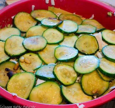 A layer of sauteed zucchini is a delicious addition to a vegan lasagna: