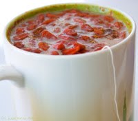 Chai is the perfect post-meal beverage in my opinion. But why not dress up your chai mug with a sprinkling of some goji berries. Your guests may be shocked to find the delicious flavor that dried goji berries add to tea or chai. And goji berries are high in antioxidants as well! You can add goji berries to a traditional chai, boxed chai concentrate or even my poor man's fire chai above.