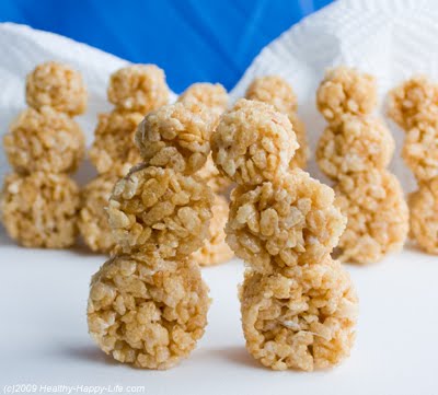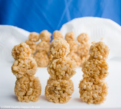 9. Stick the completed snowmen back in the fridge for and hour to fully harden. Serve and enjoy Caution: Be sure to remove the toothpicks carefully before eating. Be sure to tell people you have placed toothpicks in the crispies (if you serve them toothpicks-in).