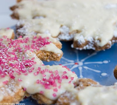 Sugar Cookies 2010. It's not easy to make 'sugar' cookies perfectly healthy. Inherent in the name, is the presence of a good amount of sugar. I've tried low-sugar recipes in the past, and while they turn out fine, there's just something nostalgic about a classic sweet sugar cookie (with a few necessary vegan changes and updates here and there of coarse). Changes: spelt flour instead of white. Vegan sugars and butter are used. Vegan decorations and frosting. Animal product free cookies. These cookies are sweetly satisfying for that once-a-year sugar high craving.
