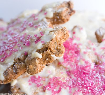 Topping: Cashew Cream Frosting (recipe above), colored sugar (from natural plant sources), sprinkled white sugar, powdered sugar.