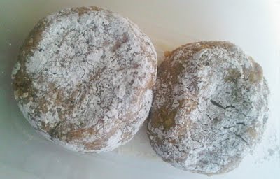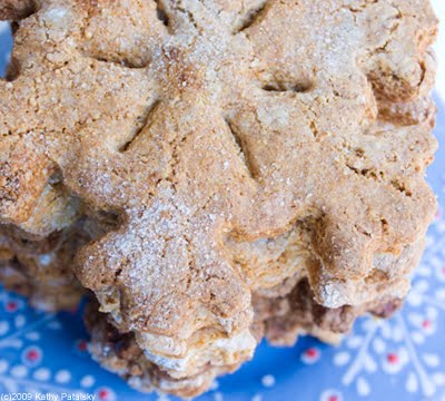 6. Back to the cookies: Roll out your dough on a surface with a ratio of 2 parts flour, 1 part powdered sugar. Since this dough is so delicate, and I was making such large cookies, I actually hand pressed out the dough (using my snowflake cookie cutter) for about 2 cookies at time. Use whatever process works best for you. Note: I actually used a pancake mold from Crate and Barrel, snowflake shape. Loved it. Makes pretty pancakes too.