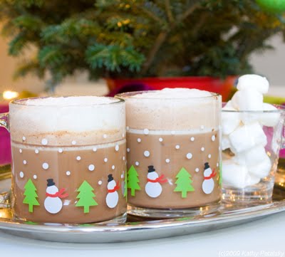 Serve near twinkling lights, a warm fire, a snowy window scape view, while listening to holiday music, near presents or while wrapping presents, after a snowball fight, while writing holiday cards, while making your list and checking it twice, while finishing up pesky desk work so you can head out to holiday shop, after ice skating, sledding or skiing, before taking a long winter's nap or under the mistletoe. Sip and snuggle. Snuggling is required when sharing two mugs of cocoa for two....