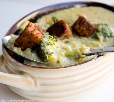 Broccoli Jack Soup with Map-otle Tempeh Croutons