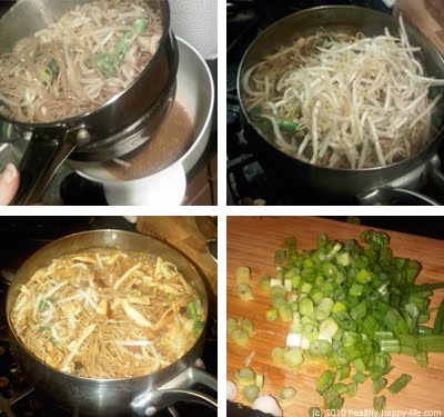 *boiling, add-ins, scallions and draining the broth in bowl.