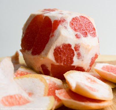 I like to peel my grapefruit like this before juicing (keep as much "good stuff" as you can):