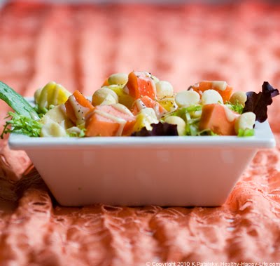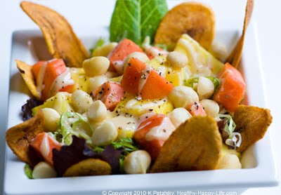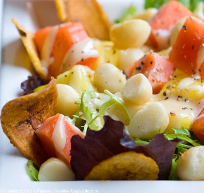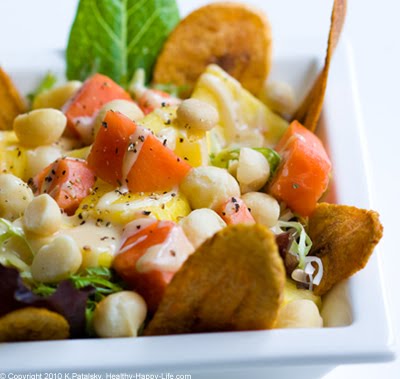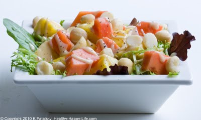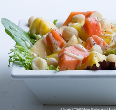 I love tropical salads. My favorite "salad dressing" is just a mix of pear juice with pineapples and sometimes mango. Sometimes I sprinkle a bit of coconut and lime onto it too!