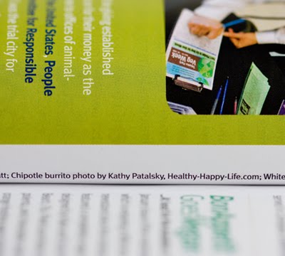 The photo they used is from my blog post about Chipotle's vegan Garden Blend burrito. The nice Veg News Magazine Art Director contacted me a while back to use my pic in a section called "DC Dominates". Check out my name in lights, er, text in my fave mag...