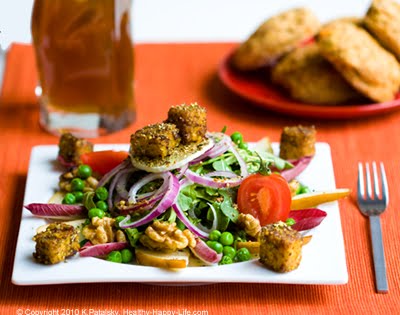Napa Valley Salad with Maple Citrus Dijon Dressing and Lemon Pepper Tempeh Croutons