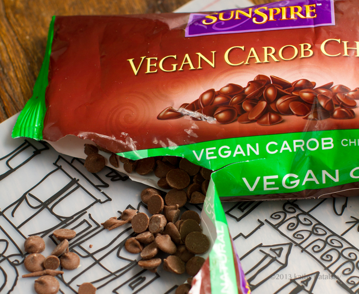Buying Carob. I picked up the forest green bag of chips labeled "vegan carob chips." My husband glared at me. I put them back on the shelf. I tapped my toe and scrunched my brow. I grabbed the mini vegan chocolate chips from EnjoyLife - that I love so much. But those silly carob chips kept whispering to me to grab them and run. I tossed back my beloved chocolate chips and quickly pushed the carob chips into my hand basket and sped away. Wait, what? I could just hear the question coming from my husband's lips as I scampered away down the Whole Foods grocery aisle, like a spring bunny on the run..