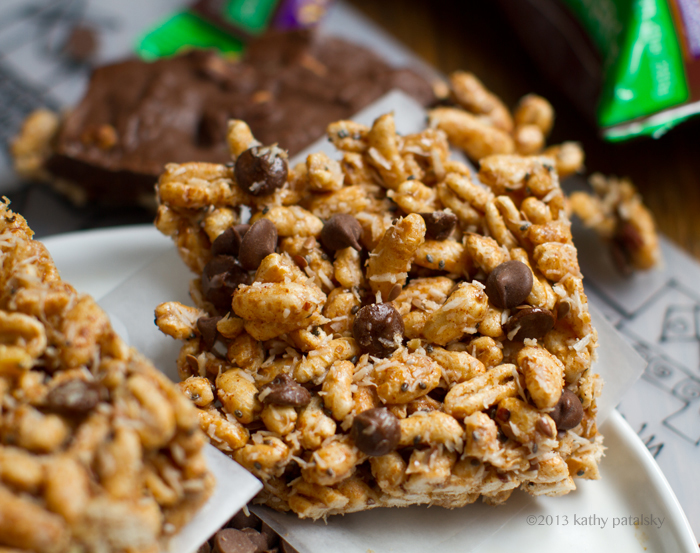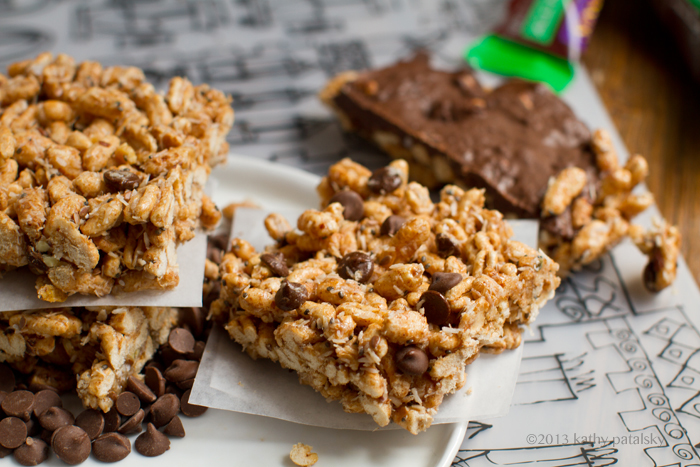 Kathy, this looks A-M-A-Z-I-N-G! So childlike and indulgent at the same time!:) I love coconuts in these bars which is usually lacking from traditional puffed cereal bars and no-bake cookies. Great, great recipe:)