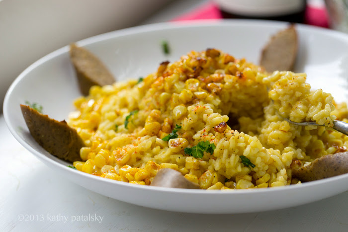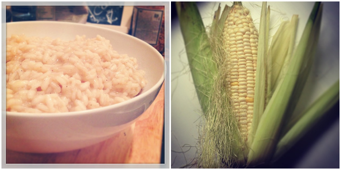 Sweet Corn. Sweet summer corn becomes even sweeter when you roast it in the oven and it supplies the perfect compliment to the nutty, velvet-y, creamy risotto rice. This combination reminds me a bit of southern grits. Sweet corn flavor with a creamy nutty base. This is comfort food meets elegant eats wrapped up in a simple ingrdient summer dish.