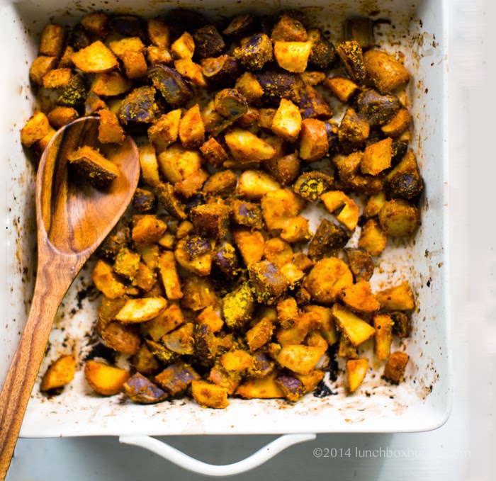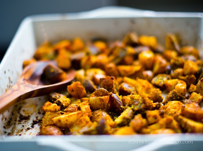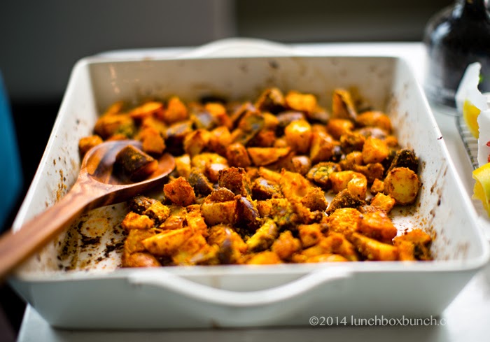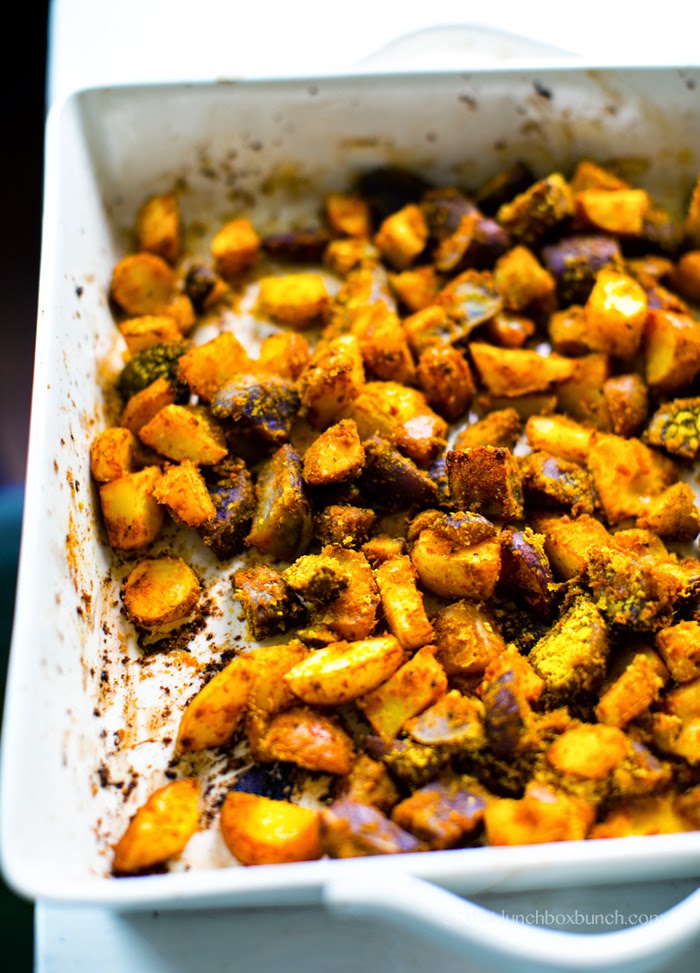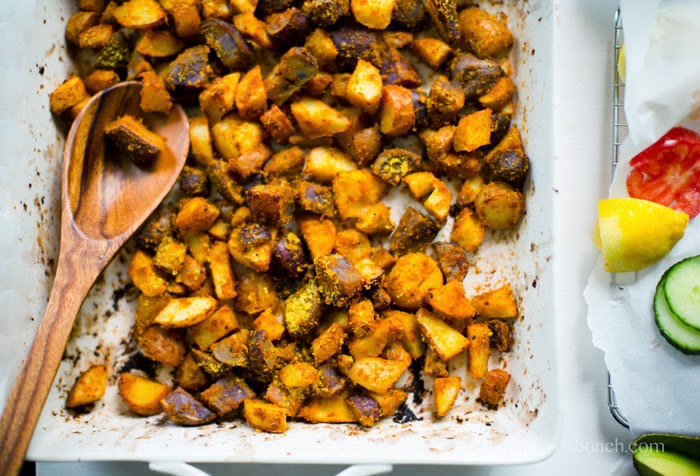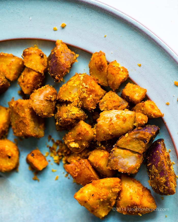- Roast for another 10-20 minutes, until the potatoes are crispy on the outside, lightly browned and tender on the inside. Do a taste test and add additional spices/salt/nooch as desired. I like to add an extra spoonful of nooch! Serve warm.