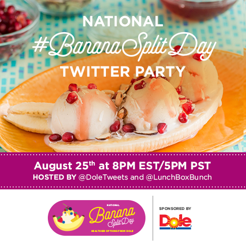 You are Invited! Grab your ice cream scoop and join me for some dessert-style fun on Tuesday August 25th as DOLE and I host a National #BananaSplitDay Twitter Party!