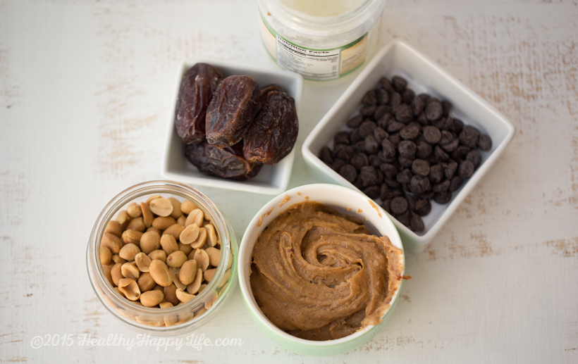The four main ingredients? Virgin coconut oil, dark chocolate chips, Medjool dates and peanuts.