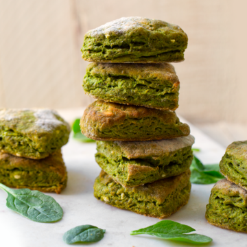 These biscuits are so good! The flavor is very simple, savory, slightly cheezy and spinachy - but in a delicious way - not an overly "veggie-like" flavor as the bright green color might suggest. My favorite way to eat this is definitely with something sweet drizzled on top. Jam would be perfect, or just some maple syrup of coconut nectar.
