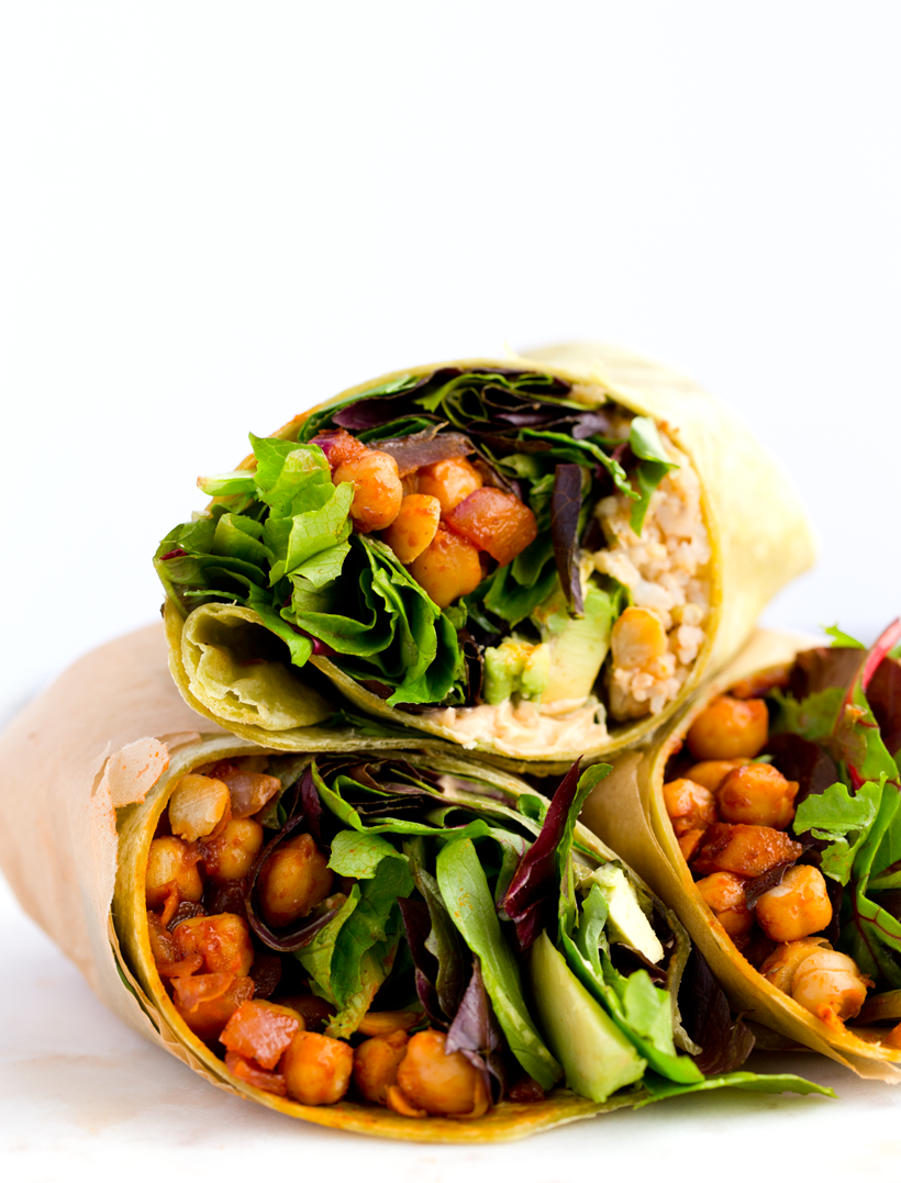 BBQ Chickpeas in a wrap with quinoa or rice, and hummus + avocado = comfort with substance.