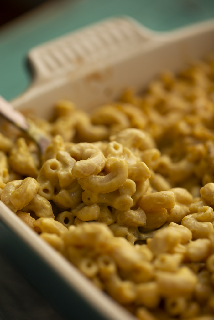 I am obsessed with this recipe! It is so tasty for dinner and keeps perfectly for a potluck. Baking the pasta makes the texture a bit more sturdy than a stovetop mac+cheese. If you need a crowd-pleasing recipe that won't take too long, this is it! Bonus points if you top it with tempeh bacon...