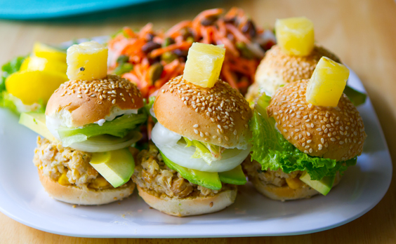 Slaw pairing? These cute little "Cali Veggie Burger" sliders go perfectly with slaw..
