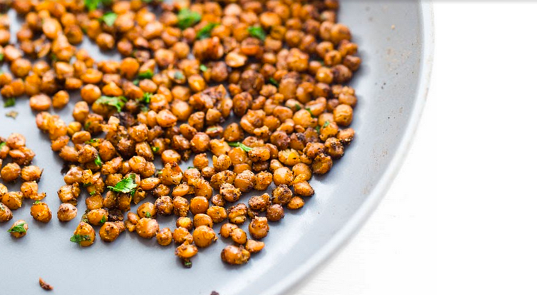 Start your day with chickpeas! Yes, really. A great nutrition tip is this. First thing in the morning, when you are whipping up breakfast, toss some chickpeas in a skillet - use the recipe in this post, or your own - and sizzle up some chickpeas. Or you could do popped lentils or even another variety of bean. Then pour those chickpeas in a bowl and pop them in the fridge. You can add them to recipes all day long. From salads and soups to pasta dishes or even as a stand alone snack.
