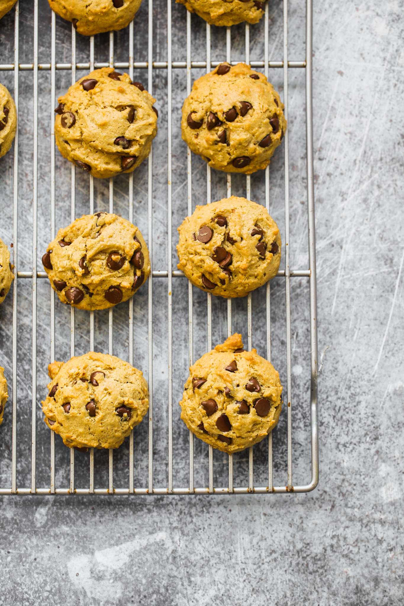 Bake until the edges are just set and the centers still look slightly soft. Vegan cookies continue to firm up as they cool. Do not wait for them to look fully done in the oven.