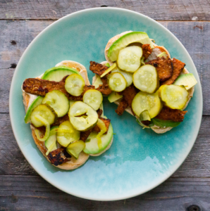 Bread & Butter Pickle Tempeh-Bacon Toast