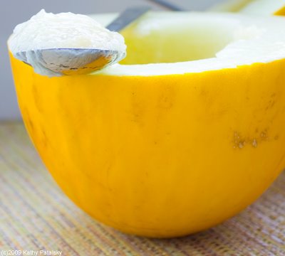 Canary Melon. This morning I ate a big bowl (half a melon) of a Canary Melon. Named after the Canary Islands, and also ironically the color of a canary bird. It was divine. Sweet, juicy, melted in my mouth. Much better than a bowl full of O shaped oats. And the other day I had a cantaloupe bowl. And a few days before that (four in a row) I was hooked on my Papaya bowl. Not a circular bowl, but my only requirements: all you need is a spoon.