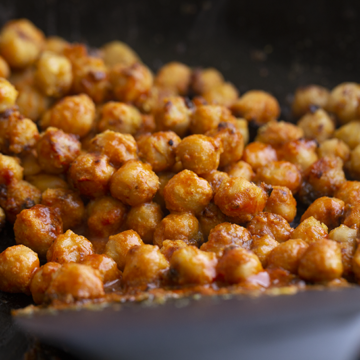 These spicy and textured chickpeas are coating in buffalo sauce goodness. Serve over a salad or rice or eat as they come!