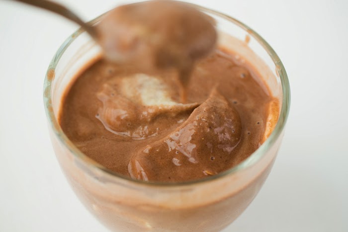 But as is, this is a very light and frosty-amazing blend that is low in fat and rich in banana-y C-H-O-C-O-L-A-T-E flavor. You can really taste the banana mingling with the chocolate. Naturally sweetened and dairy-free, this creamy frozen bliss is a winner!
