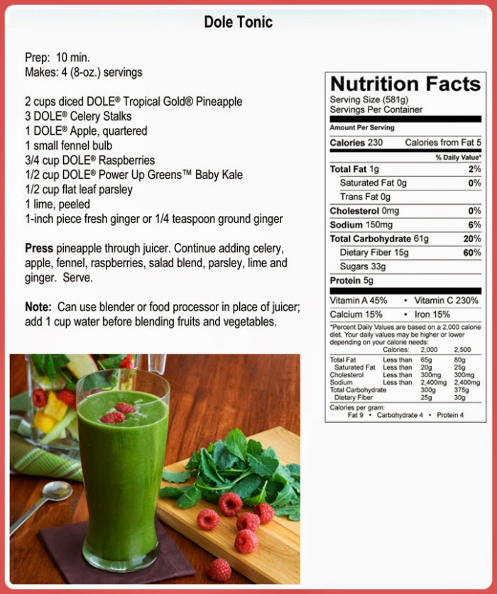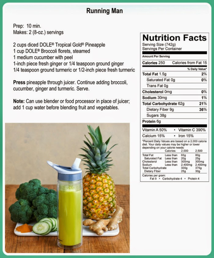 Two Bonus Recipes! Happy to share these two bonus wellness recipes for you to try, both from the wellness-savvy folks at Dole Fresh. I love this Dole Tonic, all green and amazing. And check out the pineapple-infused "Running Man" at the end of this post!