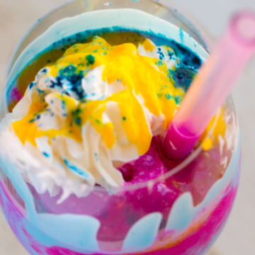 • Add the whip and sprinkle on top and serve! Feel magical. Glow. Channel your inner unicorn.