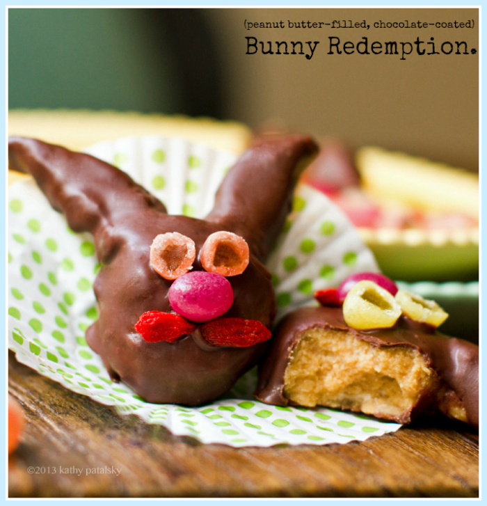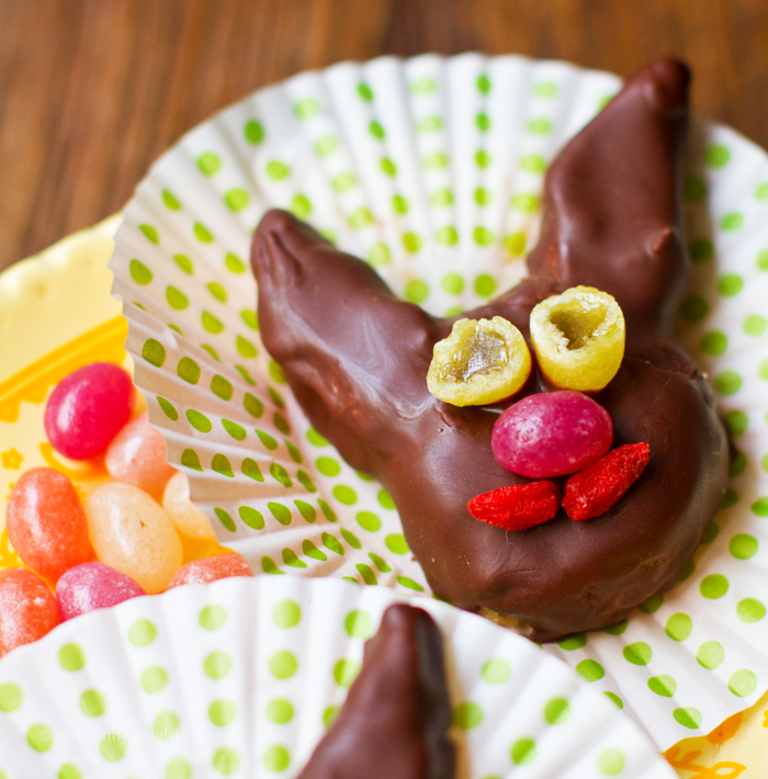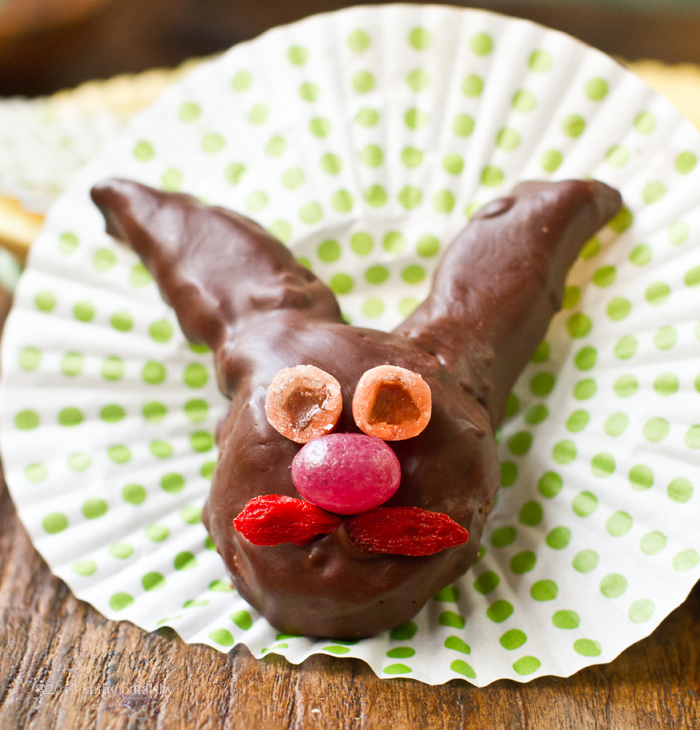 It is Bunny Redemption time. Yup. One of you called me out on my bunny pics in this recipe and I am back to redeem my league of chocolate peanut butter "healthy makeover" Easter bunnies. Because this recipe is just too yummy to not be super cute for Easter..